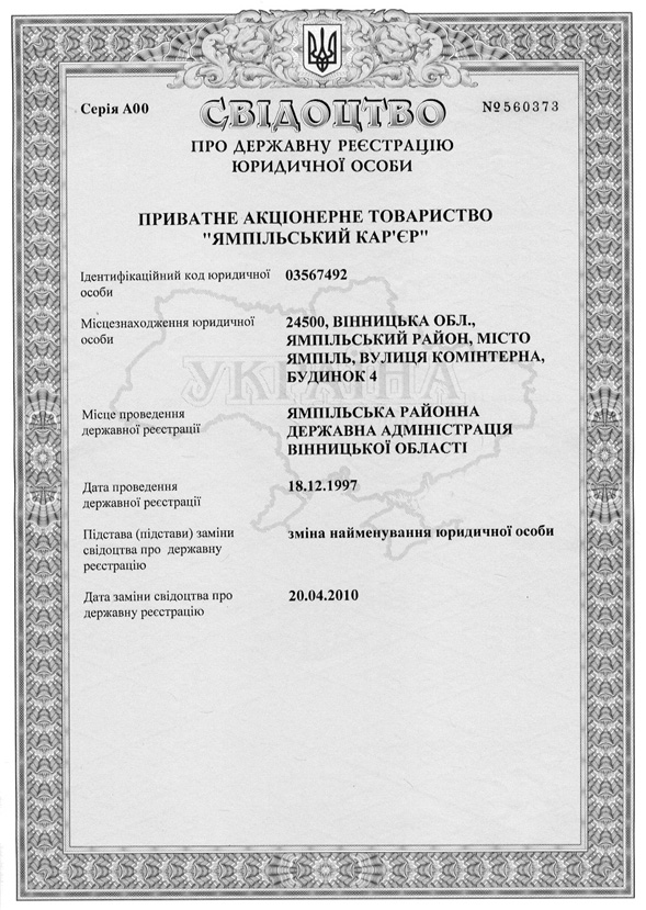 Свідоцтво про державну реєстрацію юридичної особи