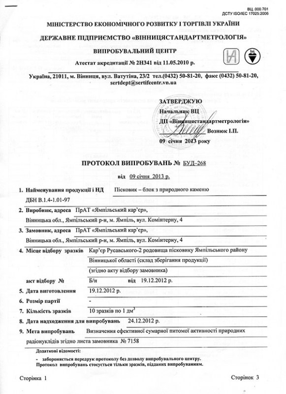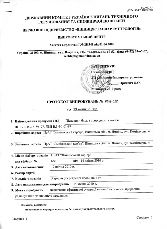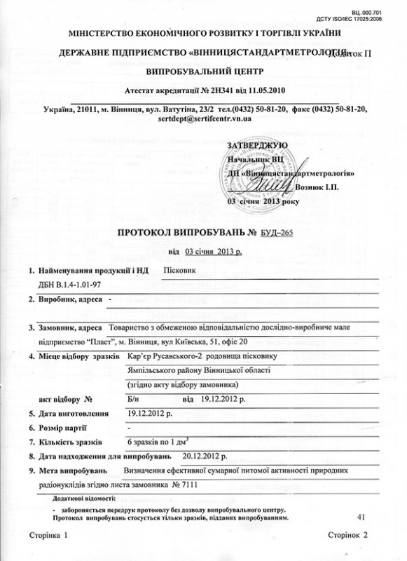 Протокол випробувань стор. 1