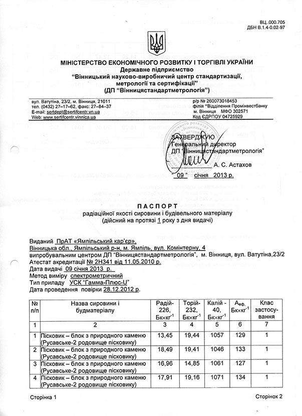 Паспорт радіаційної якості 2013 р. стор. 1