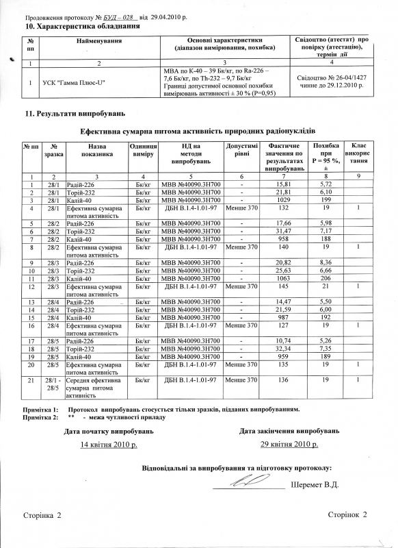 Протокол випробувань стор. 2