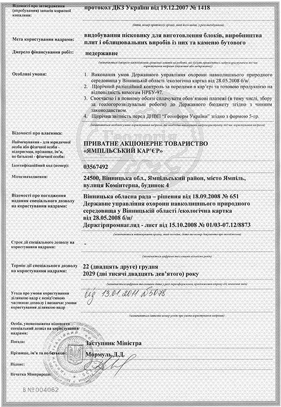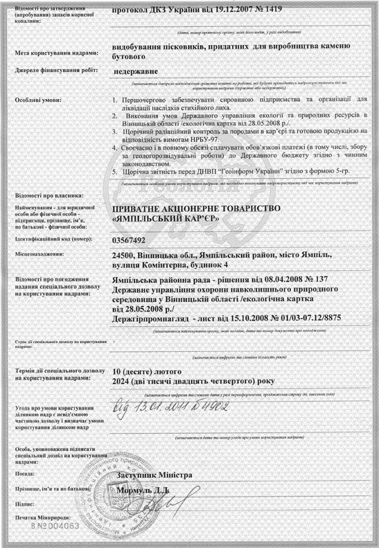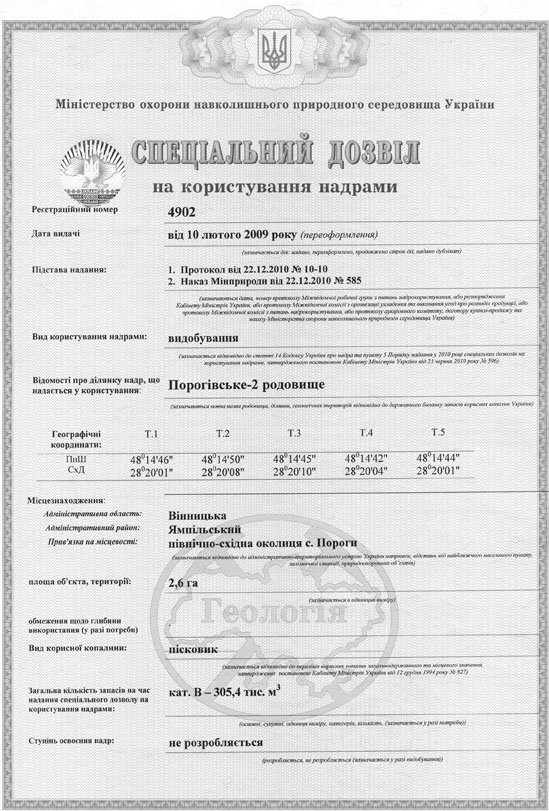Дозвіл на використання надр родовища "Пороги-2" стор.1