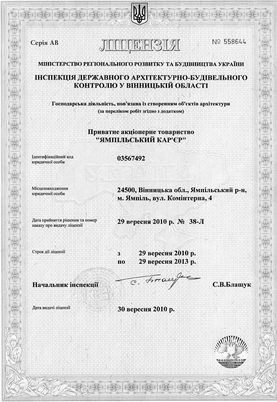 Ліцензія на госп. діяльність, пов'язану із створенням об'єктів архітектури