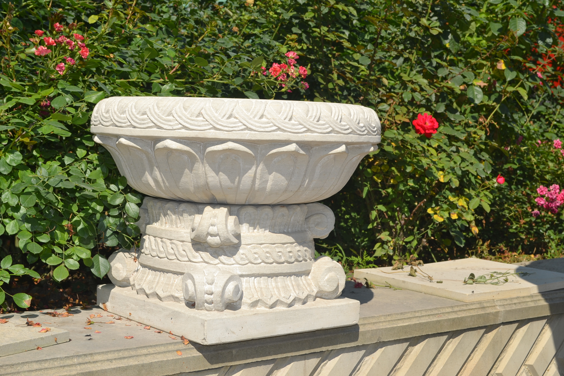 Кам’яні вази можна використовувати не лише у саду чи парку. Їх розміщують біля сходів, вхідних дверей, навіть поруч із каміном усередині приміщення, у великих залах чи холах, на майданчиках та терасах відкритого типу. Головне щоб вони гармонійно поєднувалися з іншими декоративними елементами, створюючи оригінальні ансамблі.